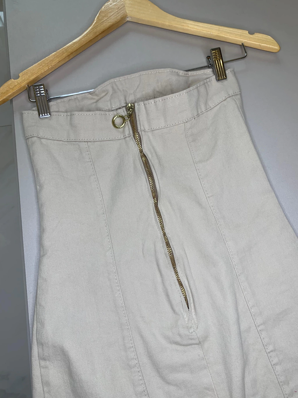 O vestido tomara que caia jeans curto nude é uma ótima opção pra se ter no armário, pois seu corte e tom possibilitam a combinação com diversos tipos de sapatos. Um vestido fresco e super arrumado, que com seu decote tomara que caia deixa o look super feminino.